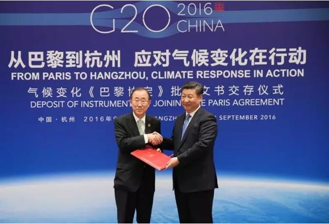 △2016年,習近平向潘基文交存中國氣候變化《巴黎協定》批準文書。